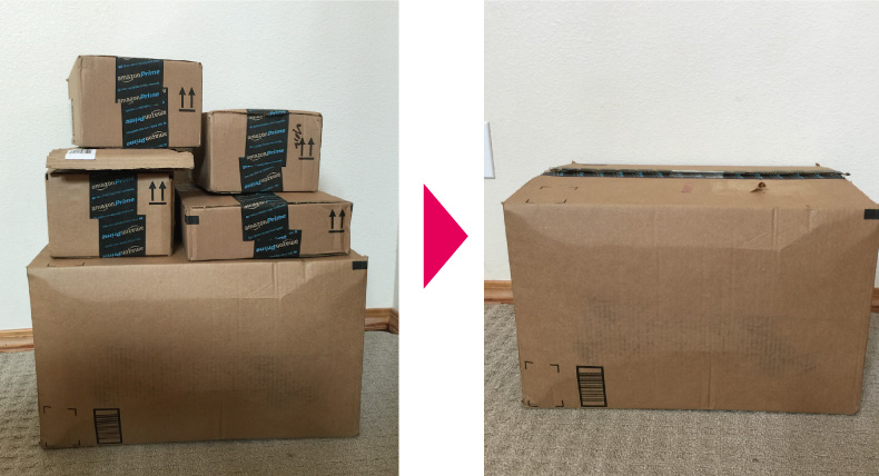 Amazonにて6商品を同時購入、1箱になって届くと思っていたところ、