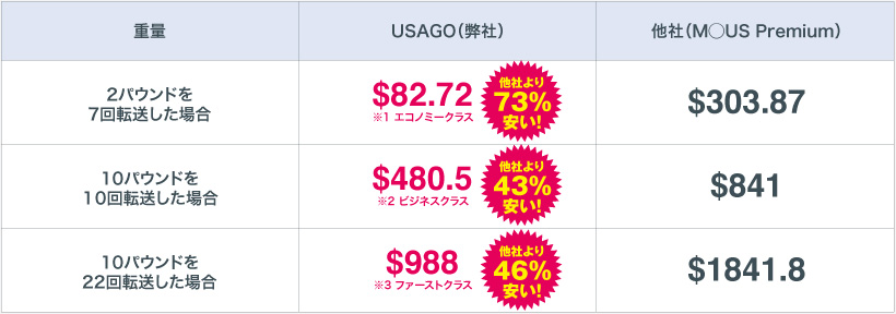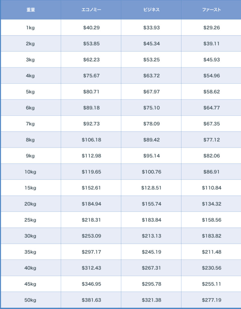 | 1キロあたりの送料※1 | $13.2/kg | $8.6/kg | $7.7/kg |